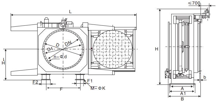 DN D D1 B b nd H H1 L A A1 F F1 F2 MK Electric power (kw) Quality (kg)
