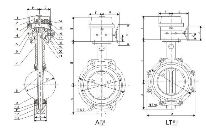 XD371X消防信號蝶閥主要外形尺寸及重量(PN1.0/1.6MPa)